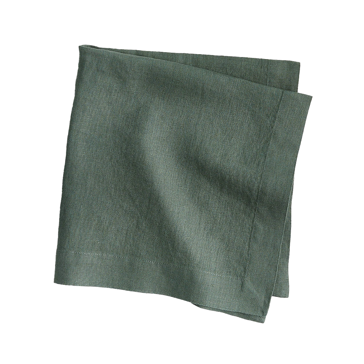Lay the foundation for your table with premium linens. Here, I started with an embroidered stripe linen blend tablecloth and introduced an additional layer of texture using Europen Flax Linen napkins in Pine Green which is the color palette that anchors the table. TL:DR - use any table covering that you love and have on hand that compliments your color scheme and incorporate a second textile, such as linen napkins or chargers to set the tone of the table.